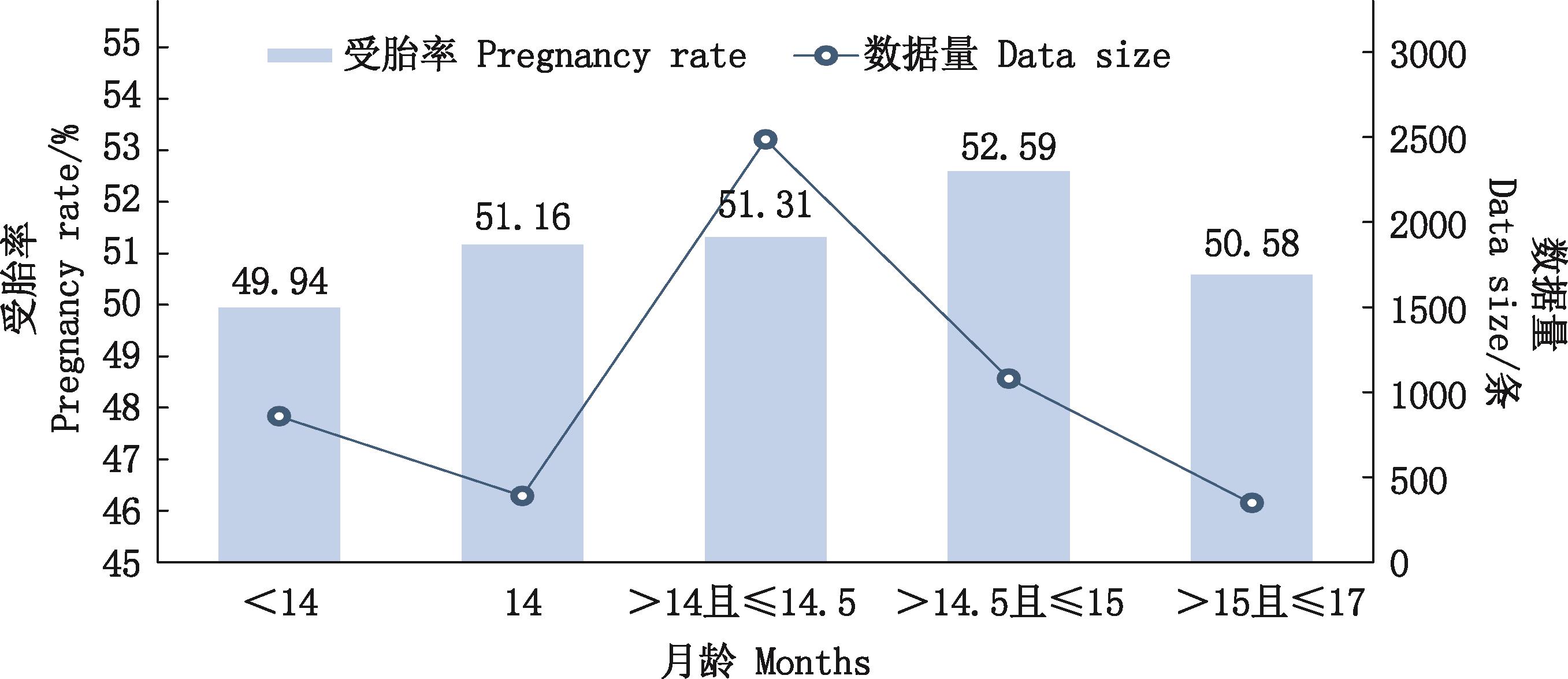 性状 Traits | 水平 Levels | 数据量 Data size/条 | 受胎率 Pregnancy rate/% |