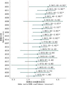 效应 Factors | 水平 Levels | 估计值 Estimated value | 标准误 SEM | 卡方 χ2 | P值 P-value | 优势比 Odds ratio | 95%置信区间 95% confidence interval |