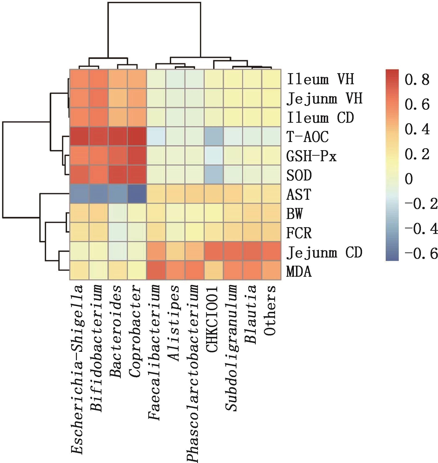 | 考拉杆菌属 Phascolarctobacterium | 0.0223±0.0021a | 0.0010±0.0002b | <0.001 |