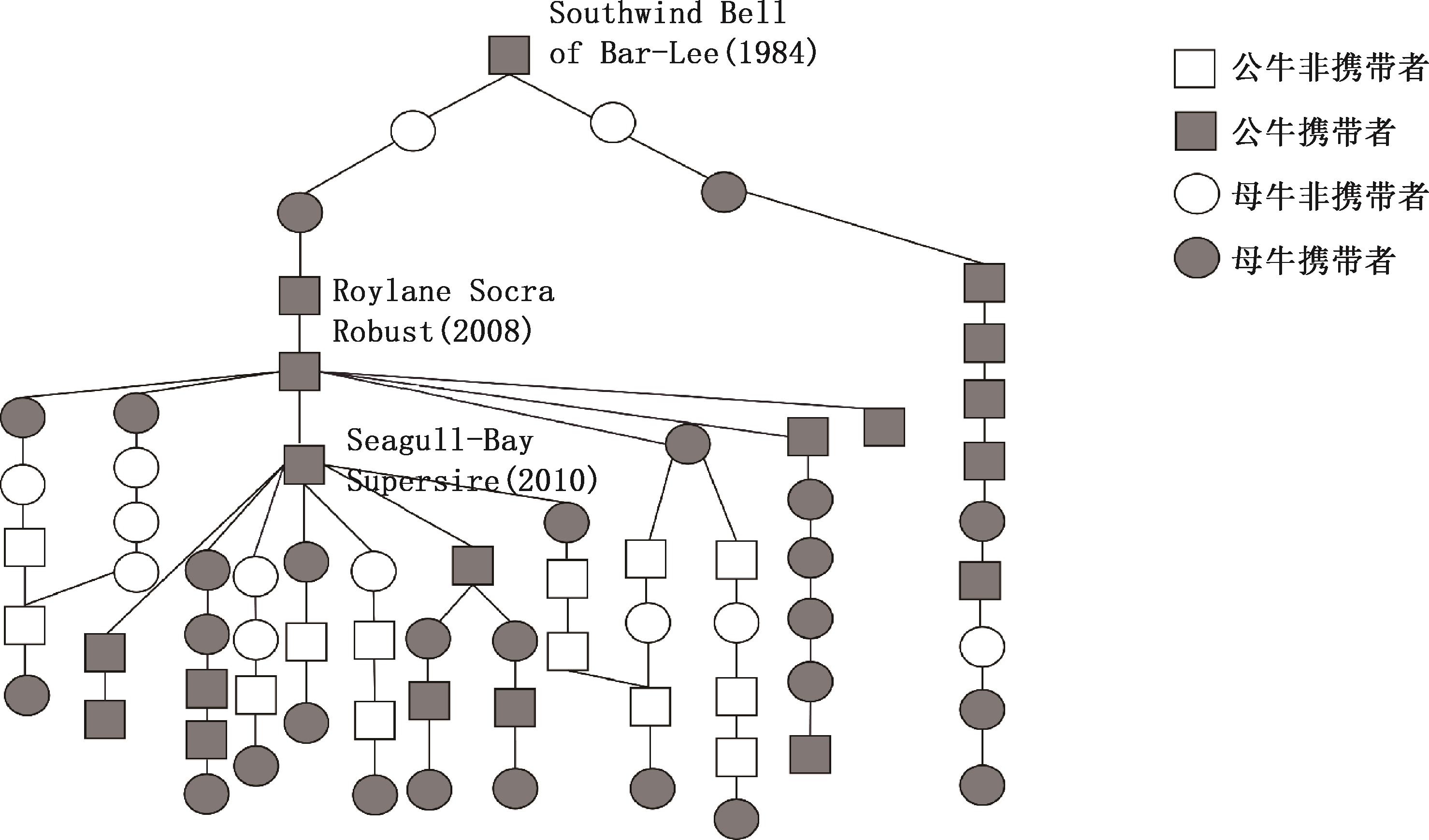 Objective Early onset muscle weakness syndrome (MW) is a recently discovered genetic defect in Holstein cattle. The sick calves exhibit symptoms such as lying down motionless after birth and atrophy of the hind limb muscles. Its genetic mechanism is related to a single-base mutation in the gene CACNA1S, which encodes the α1S subunit of the L-type calcium channel protein. This study aimed to establish a molecular detection method for this genetic defect and explore its spread within the Chinese Holstein cattle population. Method Based on the specific DNA sequence of MW pathogenic site, the primers were designed for amplification refractory mutation system PCR (ARMS-PCR). A genetic defect gene screening was conducted on 317 samples of Holstein bull frozen semen and hair follicles, and the results of ARMS-PCR were verified through Sanger sequencing. Pedigree data was used to trace the source of the MW mutation. Result ARMS-PCR detected 21 carriers of MW mutation with a carrier rate of 6.62% (21/317), and no pure heterozygotes for the defective gene were found, suggesting that the mutation was recessive and purely lethal. Sanger sequencing showed the consistent genotypes with those obtained by ARMS-PCR, demonstrating the high accuracy of this technique. Furthermore, pedigree analysis traced the origin of MW carriers to the Holstein bull Southwind Bell of Bar-Lee, born in 1984. Conclusion The MW genetic defect had already spread within Chinese Holstein cattle populations and was present at a relatively high frequency. It was recommended that ranchers should carry out genetic testing and risk assessment of MW genetic defects as early as possible, and take scientific selection and mating measures to effectively reduce the economic losses caused by genetic defects.
