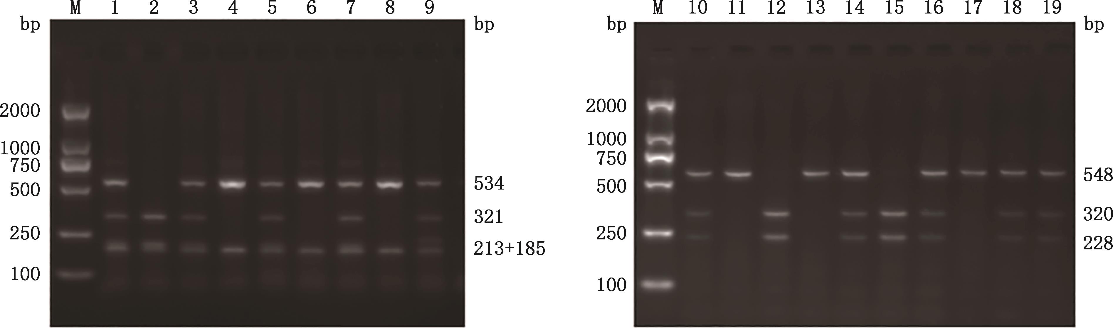 基因 Genes | 基因型频率 Genotype frequency | 等位基因频率 Allele frequency | χ2值 χ2 value | P值 P-value | |||