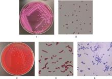 Colony morphology and staining microscopy results of the isolatesA and B, Colony morphology of milk isolate on MacConkey agar and Gram staining (1 000×), respectively; C and D, Colony morphology of blood isolate on blood agar and Gram staining (1 000×), respectively;E, Wright-Giemsa staining of bacteria in blood sample (1 000×)"